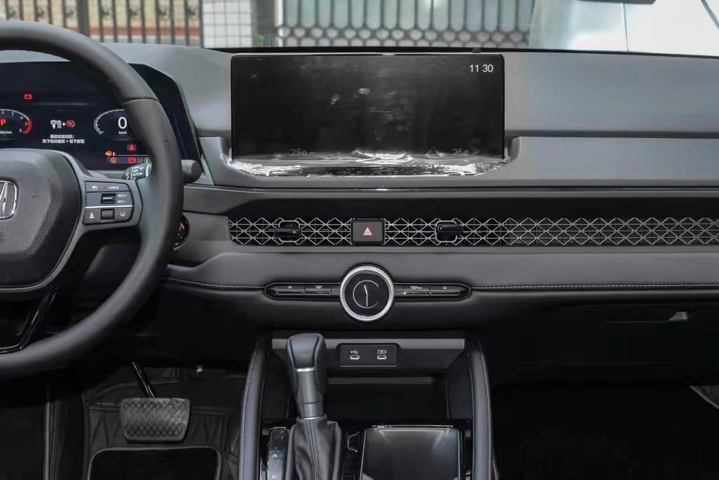 進入到雅閣的前排,平心而論,和動感至上的外觀設計對比,座艙造型的確有些遜色。對稱式的中控臺布局,一句話形容概括就是中規中矩,實用性強。不過在細節處理上,雅閣還是有一定新意可言的。例如貫穿設計的空調出風口和位于中間位置的快速調節按鍵,確保了實用性的同時,也有著較強的設計美感。12.3英寸的懸浮式中控顯示屏,內置Honda Connect4.0系統,支持主流的手機互聯以及OTA升級,智能化表現能夠較好滿足主流消費者的用車需求。