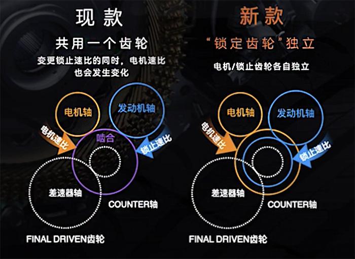 另外,新車(chē)也更換了全新驅(qū)動(dòng)電機(jī),從老款的13000rpm提升到14500rpm,這讓純電行駛時(shí)的極速能達(dá)到175km/h,并且配合上平行軸結(jié)構(gòu)的全新E-CVT變速箱,為電機(jī)和發(fā)動(dòng)機(jī)分別配備了專(zhuān)用齒輪,不僅提升了再加速性能,更對(duì)高速環(huán)境下的燃油經(jīng)濟(jì)性表現(xiàn)有更強(qiáng)提升。