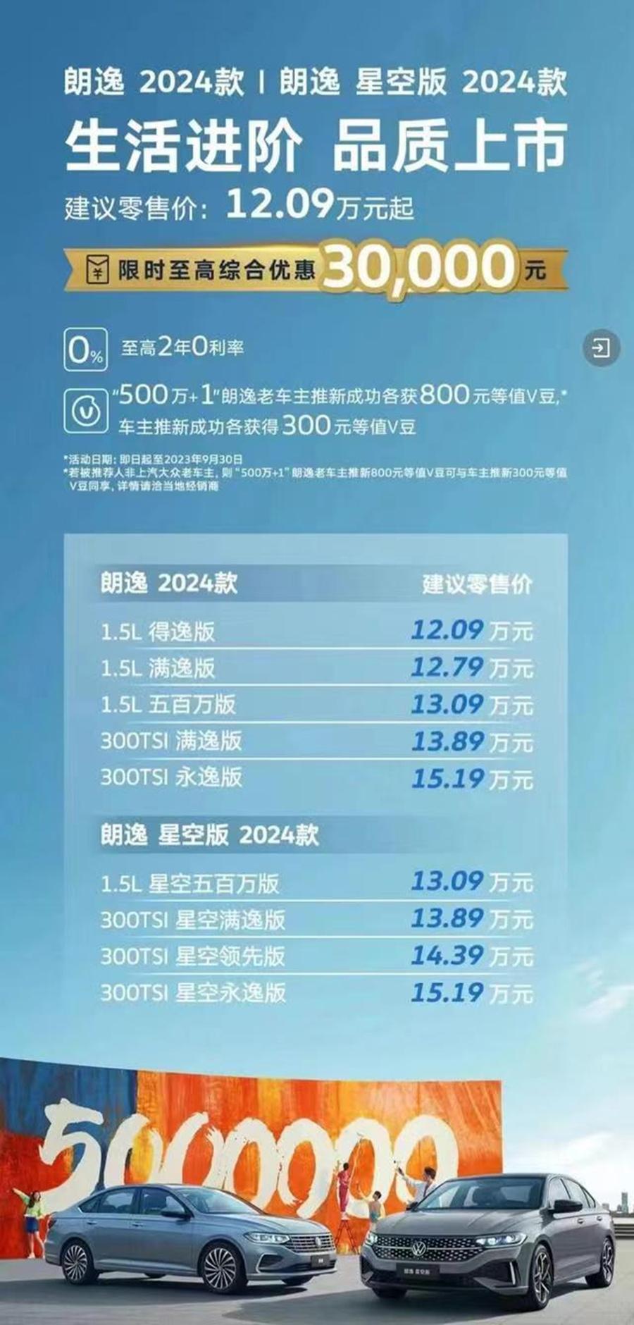 與此同時(shí),上汽大眾還推出了限時(shí)優(yōu)惠活動(dòng),即日起至9月30日,購(gòu)買(mǎi)2024款朗逸可享受至高綜合優(yōu)惠3萬(wàn)元、至高2年0利率等購(gòu)車(chē)禮遇。