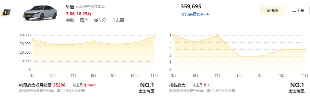 據(jù)最新行業(yè)綜合銷量數(shù)據(jù)顯示,軒逸近一年的銷量高達(dá)359695輛,比第二名的大眾朗逸多了1萬(wàn)多輛,比第三名的比亞迪秦PLUS DM-i多了6萬(wàn)多輛。足以可見(jiàn)軒逸是非常受市場(chǎng)的青睞,同時(shí)也備受廣大消費(fèi)者的支持和喜愛(ài)。
