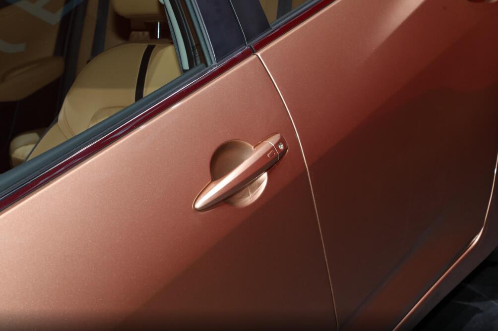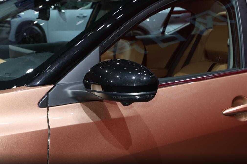 值得一提的就是,車窗框周圍黑色的密封條和A、B柱的曜石黑色色漆交相輝映,再結(jié)合搶眼的后視鏡,這在視覺(jué)上形成了強(qiáng)烈對(duì)比,增強(qiáng)了車輛的色彩層次感。車門把手與車身顏色相同,與整車的色調(diào)融為一體,顯示出了車輛設(shè)計(jì)的細(xì)致考慮。