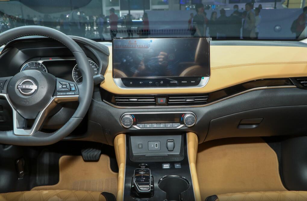 好了,重點(diǎn)要來(lái)了,軒逸內(nèi)飾最核心的地方,即就是中控臺(tái)。坐在后座中央略微俯視,我們可以看到內(nèi)飾跟門板一樣,都是采用了黑色和淺棕色的雙色設(shè)計(jì),營(yíng)造出一種時(shí)尚而高級(jí)的感覺(jué)。