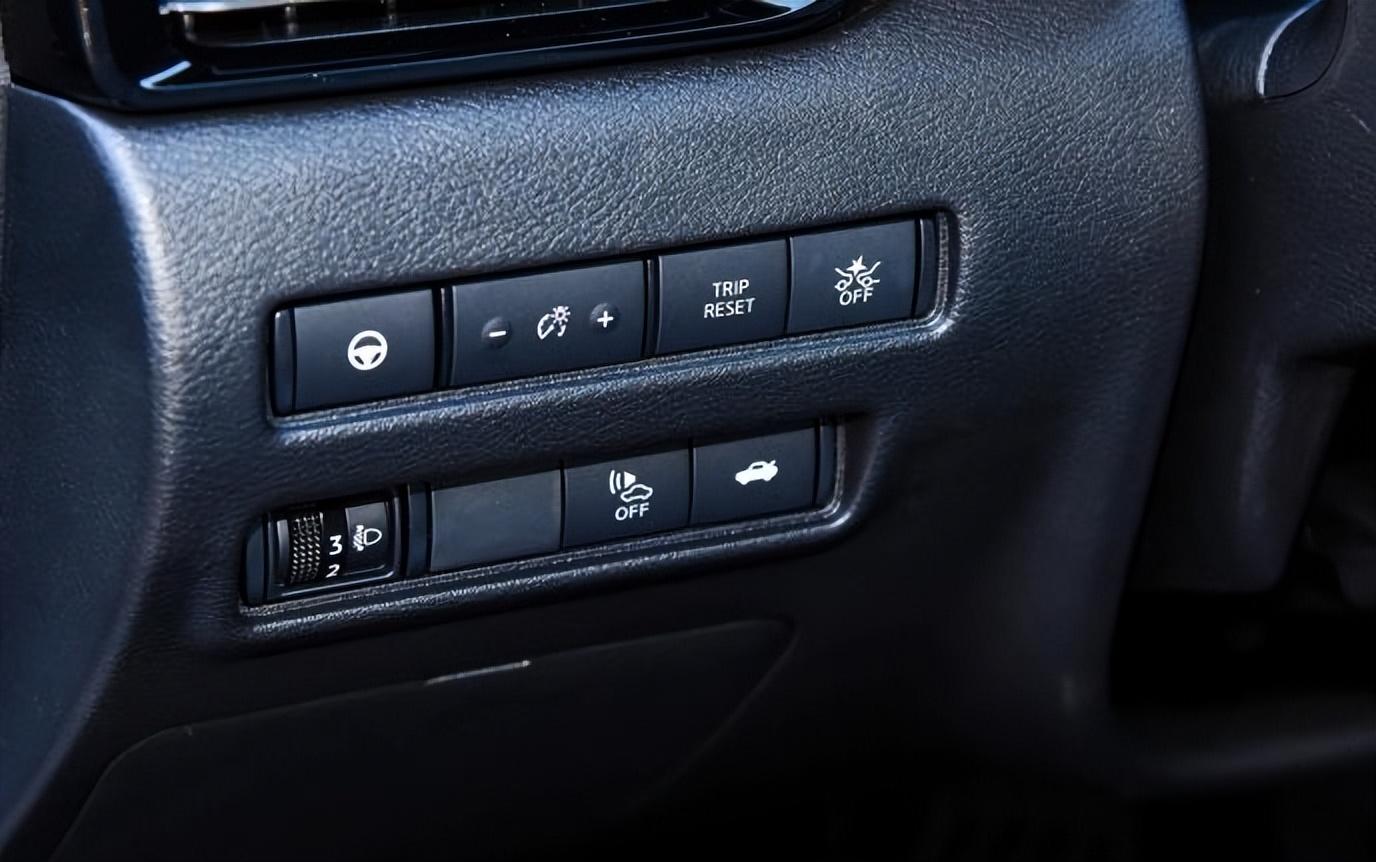 方向盤左側(cè)中控臺(tái)上也是布滿了功能區(qū)域,方向盤調(diào)節(jié)、后備箱開關(guān)、大燈高度調(diào)節(jié)等都集中在這里,操作起來(lái)也是非常方便的實(shí)體按鍵。