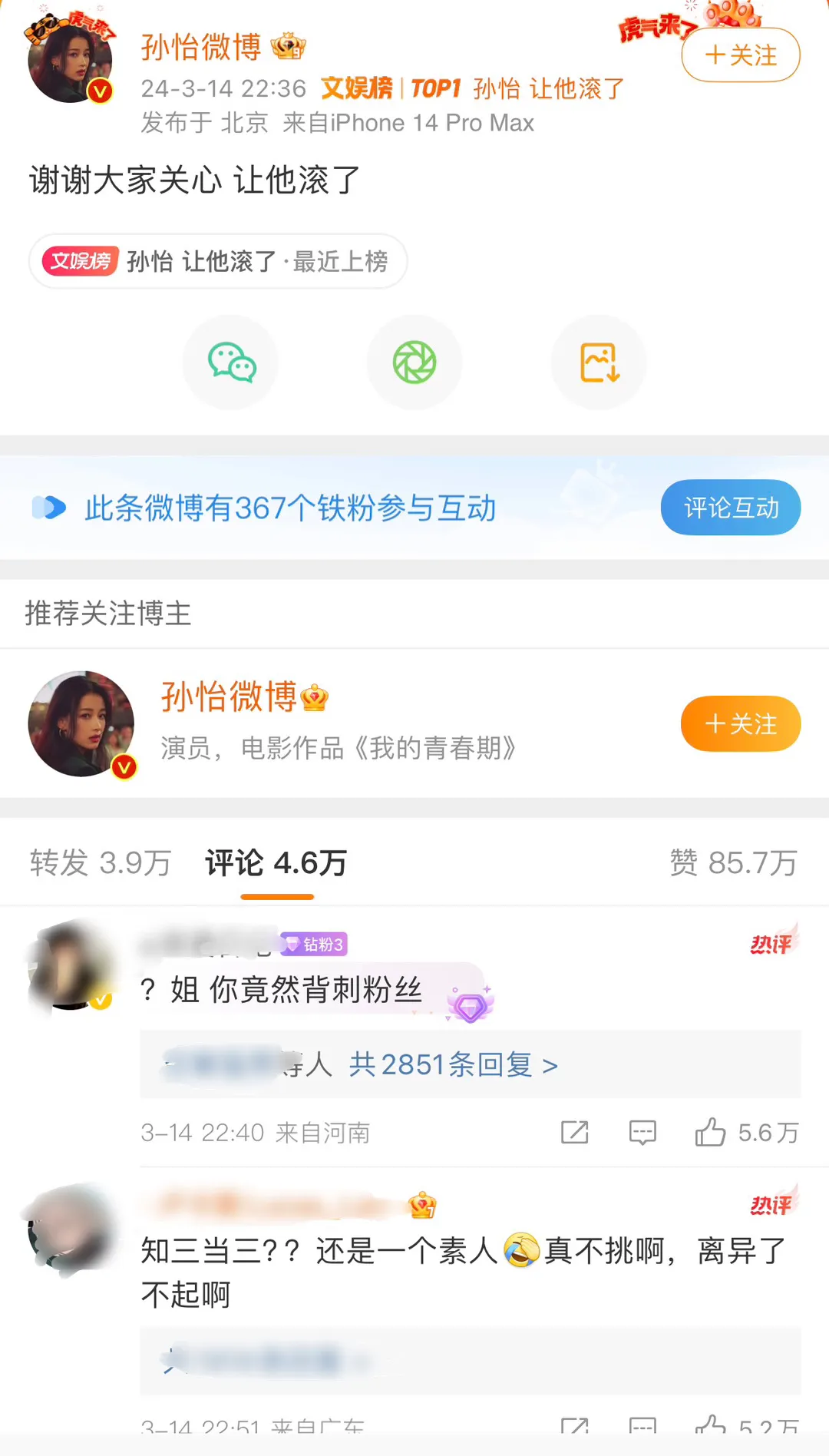 孫怡發(fā)微博“謝謝大家關心 讓他滾了”后,網友扒出孫怡之前用過的手機殼,上面寫著“遠離男人”和“再見愛人”,現在很多人都在吐槽孫怡的人設崩了,還說她“太裝”……