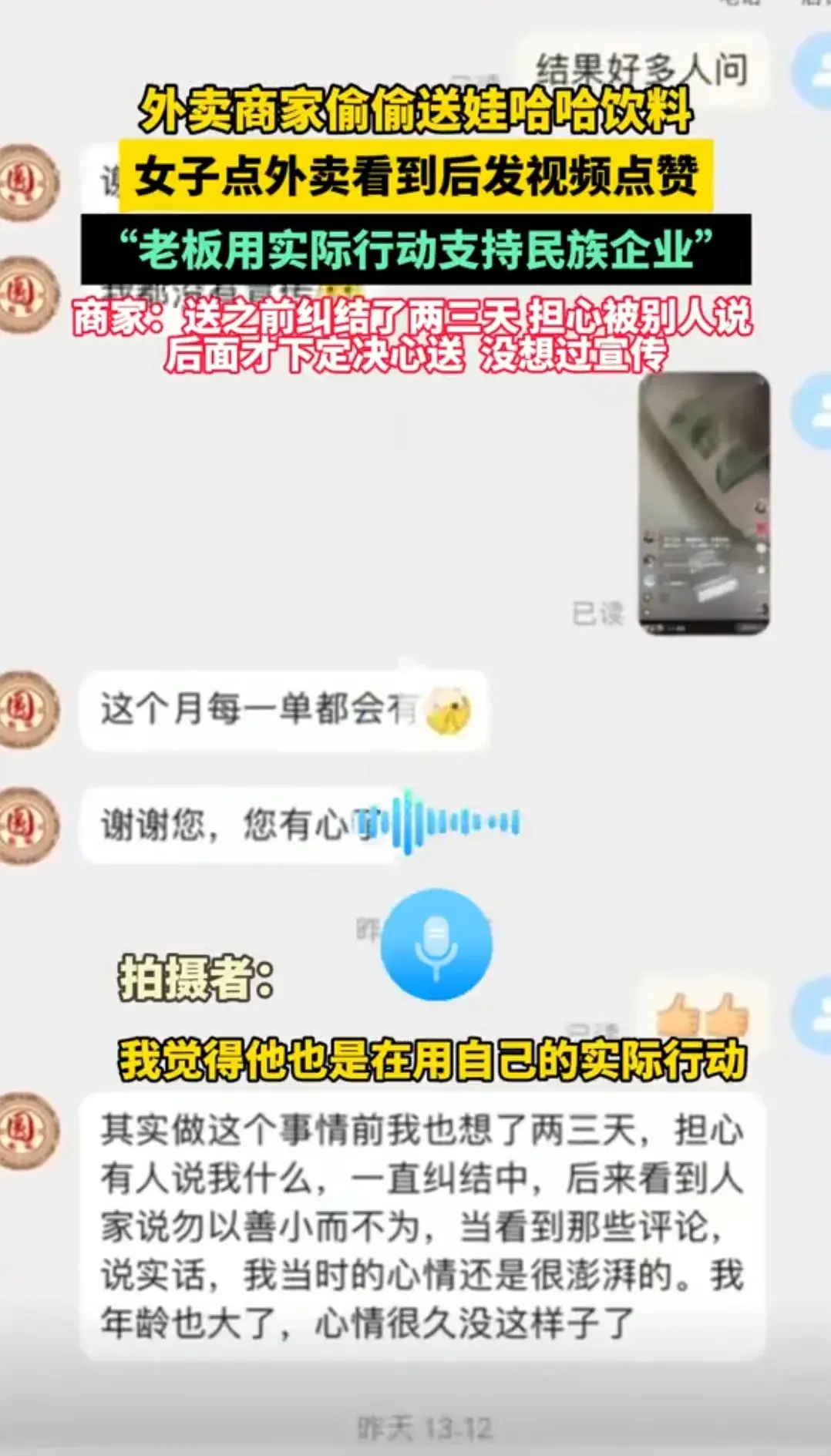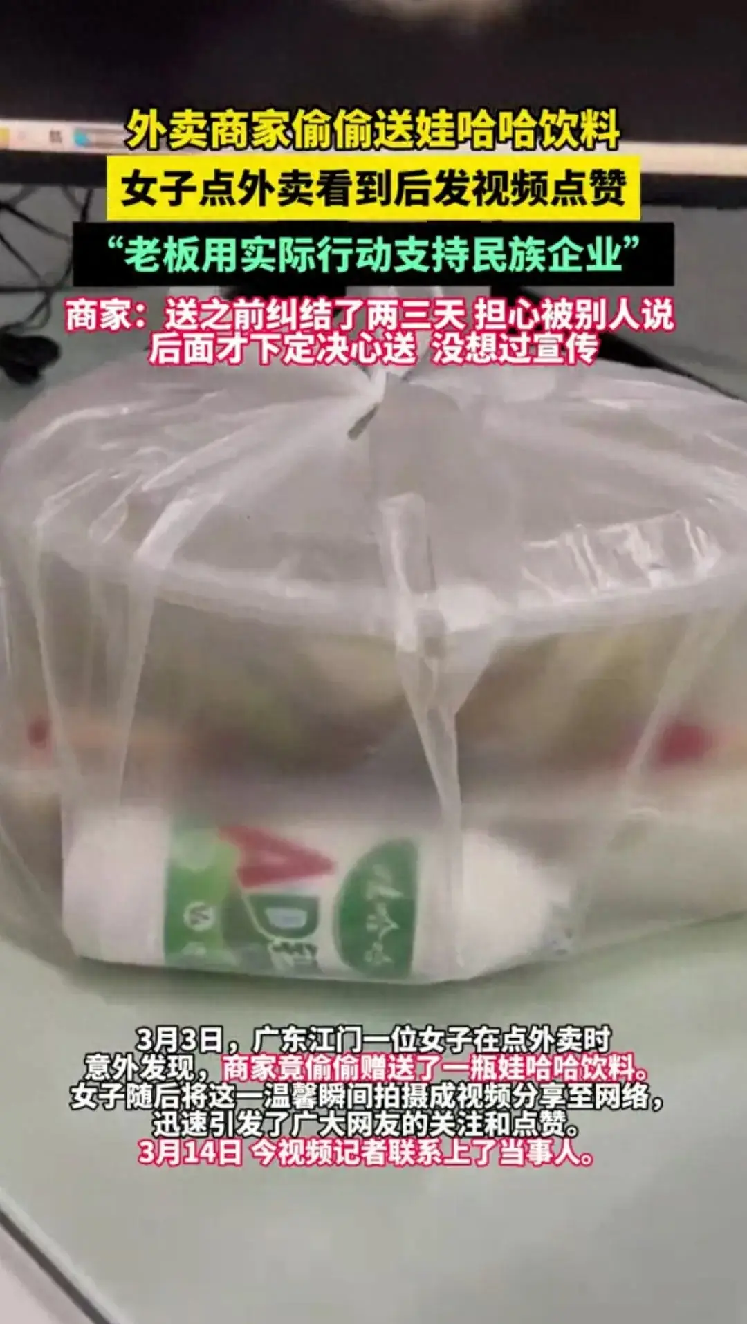 據了解,這家麻辣燙店位于天水市中心的一條繁華街道上,因其獨特的口味和優質的服務而備受當地人和游客的喜愛。而老板送娃哈哈飲料的創意,則是他為了讓游客們能夠更好地享受美食,同時也為他們送上一份清涼和關愛。