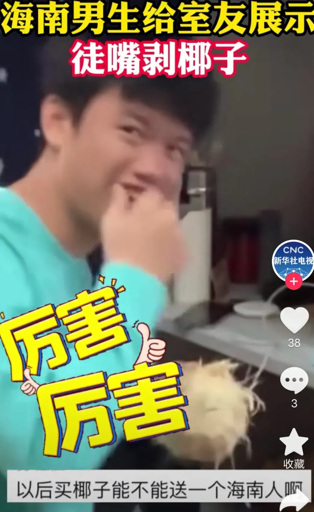 每個(gè)島嶼都有它獨(dú)特的傳統(tǒng)和文化符號(hào),而椰子則是海南獨(dú)有的標(biāo)志。通過這位男生的精彩演繹,我們更能領(lǐng)略到海南人椰子之戀,見證椰子文化的博大精深。