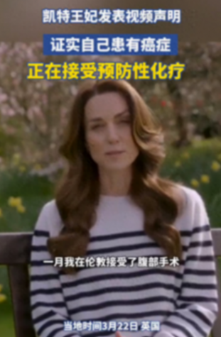 原來,凱特在今年1月的時候接受了一次腹部手術,而手術的效果一直以來都被外界所猜測,沒想到在視頻中,凱特親口承認手術的確是為了切除癌細胞,而她所患的癌癥到底是什么類型,也讓外界都產生了濃厚的興趣。
