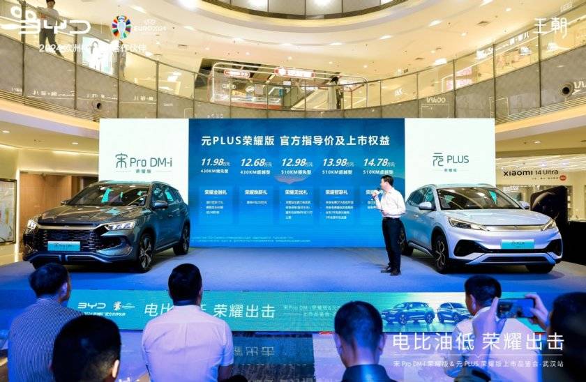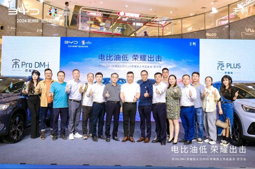 顛覆升級,再創王者輝煌;煥新而來,解鎖冠軍榮耀!2024年3月31日,“電比油低 榮耀出擊”宋元榮耀版上市品鑒會·武漢站在菱角湖萬達中庭隆重舉行,比亞迪廠家領導、武漢汽車領域主流媒體以及迪粉朋友們歡聚現場,共同見證了比亞迪宋元榮耀版的煥新上市。