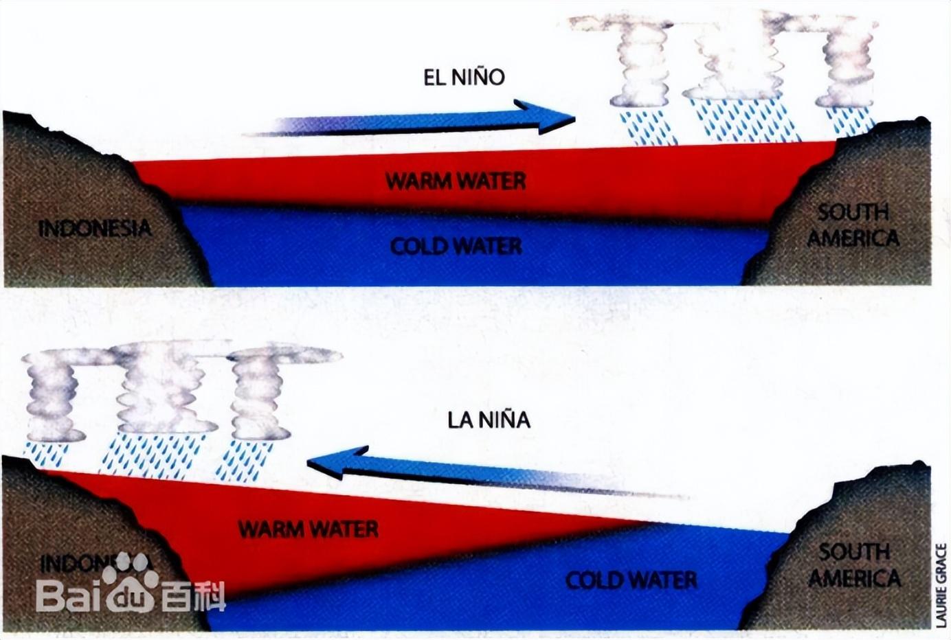 拉尼娜也被稱為“反厄爾尼諾”,是指赤道附近東太平洋水溫異常下降的現象,表現為東太平洋明顯變冷,同時也伴隨著全球性氣候混亂。拉尼娜事件總是出現在厄爾尼諾現象之后
