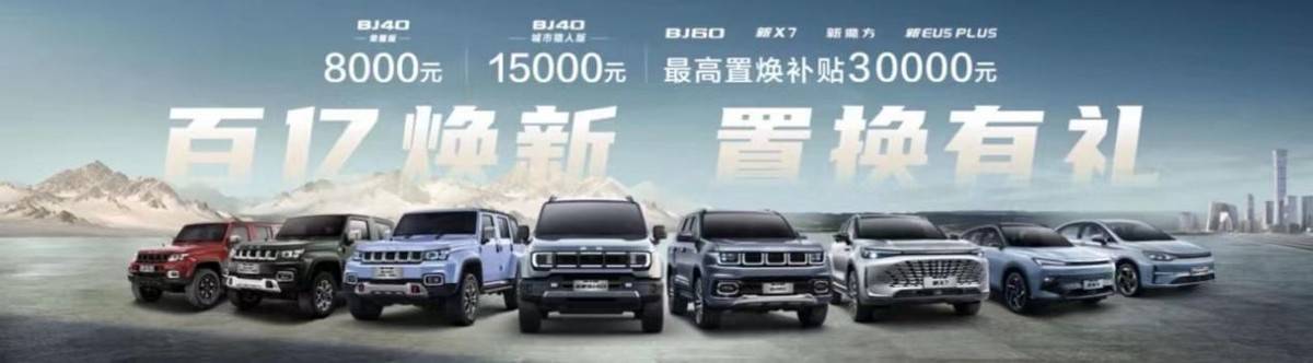 BJ40榮耀版、全新BJ40城市獵人版、BJ60等熱門車型,分別推出了除舊車殘值外的至高8000元、至高15000元以及至高3萬元的額外置換補(bǔ)貼,妥妥的真金白銀送給用戶,只為讓更多用戶都能以極低的價(jià)格置換到自己滿意的春游新駕。