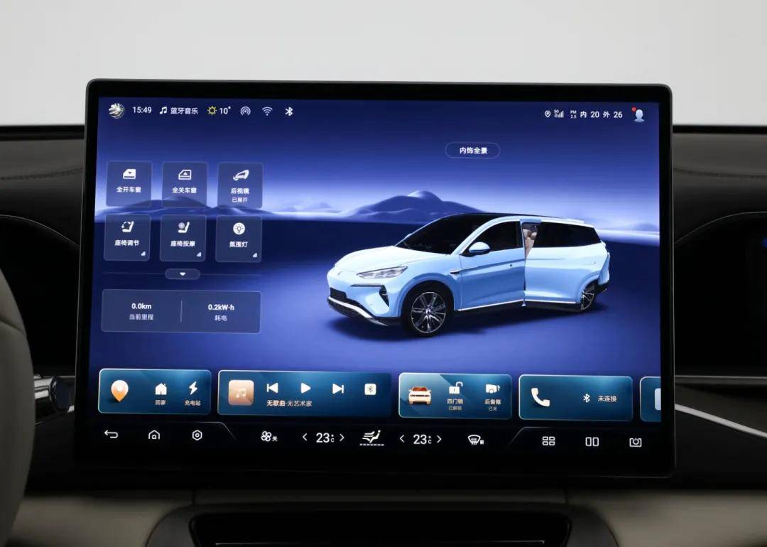 新款N7采用了比亞迪新的DiLink系統,操作體驗和功能有了提升,芯片方面官方也沒有公布具體的型號,只宣稱采用了6nm制程的先進芯片,性能預計和驍龍8155接近。