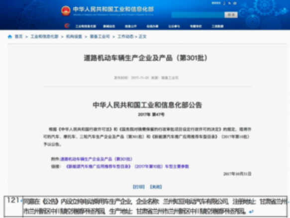 2017年11月1日晚18時,工信部網站公示,同意在《公告》內設立純電動乘用車生產企業——蘭州知豆電動汽車有限公司,這表明知豆已經獲得新建純電動乘用車生產資質。之前盡管有15家企業獲發改委批復,但通過工信部審核的企業僅北汽新能源、云度新能源、江鈴新能源,知豆四家。