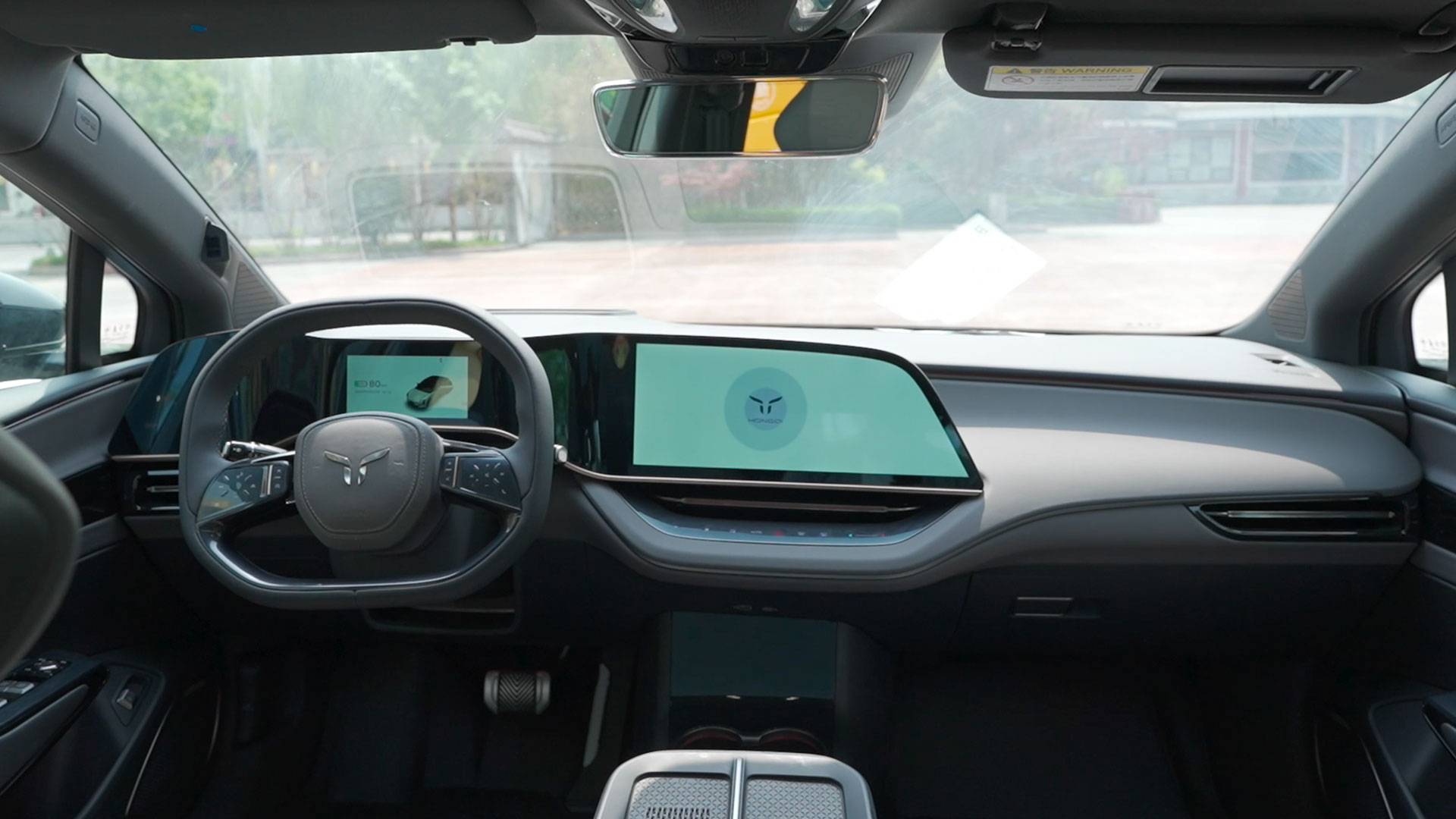 內飾我覺得是這款車的一大亮點,比如彩旗飄飄的三聯屏,科技感十足,而且紅旗EH7敢于打破常規,中控屏采用不規整形狀,十分有新意,再加上類似鏤空的雙幅方向盤,凸顯出新能源屬性。