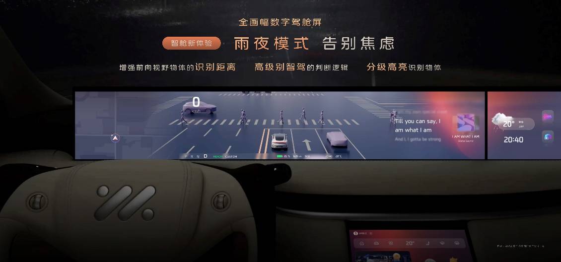 除此之外,智己L6還在智能座艙內融合進了“虛擬空間動態追蹤技術”,它可以借助中控大屏,對駕車時車外的一些危險信息進行實時追蹤,并且高亮顯示,這種“補盲”的功能,可以幫助用戶規避突然竄出的行人和小動物、前方突然急剎的車輛、雨夜前方視線不清等等非常規的路況帶來的危險。