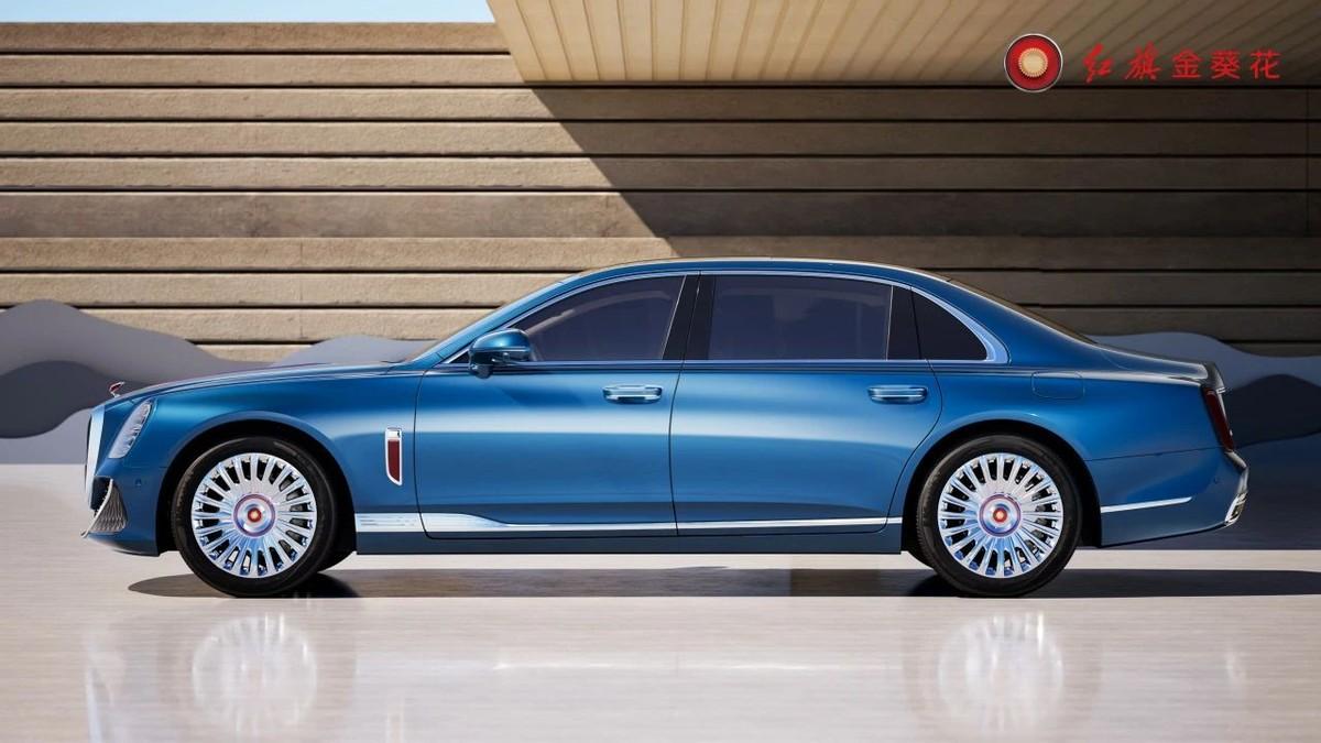 車身側(cè)面筆直修長(zhǎng),經(jīng)典的船式車身彰顯出國(guó)車基因,車輪后方加入特殊標(biāo)識(shí)強(qiáng)化身份屬性,鍍鉻式車窗包邊與側(cè)裙飾條則是提升尊貴感的重要方式,類似渦輪的多條輻式輪轂,為其增添了一分時(shí)尚感。尺寸方面,該車的長(zhǎng)寬高分別為5353/1998/1511毫米,軸距為3260毫米,整車尺寸相當(dāng)夸張。