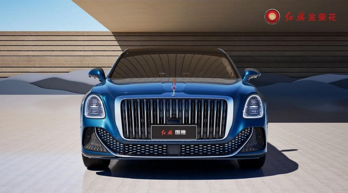 紅旗國(guó)雅在外觀方面?zhèn)鞒辛藝?guó)車基因,標(biāo)志性的中軸線紅旗車標(biāo),前方引出可升降式立標(biāo),強(qiáng)化身份感。車鼻下方是大尺寸方形格柵,內(nèi)部以豎條幅鍍鉻條填充,并穿插進(jìn)雨滴狀元素進(jìn)行點(diǎn)綴,外側(cè)再用鍍鉻條進(jìn)行包裹,形成很強(qiáng)的視覺(jué)沖擊力。車頭兩側(cè)配備馬蹄狀大燈組,內(nèi)部集成了環(huán)形光源和縱向兩點(diǎn)式矩陣式大燈,有著很高的辨識(shí)度。前包圍區(qū)域采用“U”形鍍鉻條勾勒出笑臉狀下格柵,輔以點(diǎn)陣式鍍鉻裝飾填充,兩側(cè)霧燈區(qū)進(jìn)氣道融入特殊紋理點(diǎn)綴,顯得相當(dāng)高級(jí)。