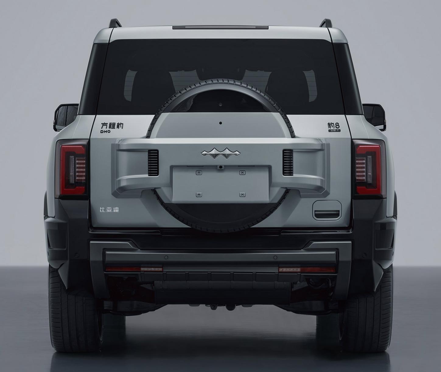 外觀方面,新車整體延續(xù)SUPER 8概念車的設(shè)計(jì)理念,采用方程豹全新設(shè)計(jì)語(yǔ)言,前臉?lè)娇驙?孔式前格柵,造型兇悍。格柵中間位置處加入方程豹LOGO,彰顯比亞迪高端越野SUV的身份。格柵上部加入貫穿式燈帶,連接兩側(cè)半方塊狀的大燈組,讓整體前臉形成倒“凸”字形,顯得十分的硬朗。