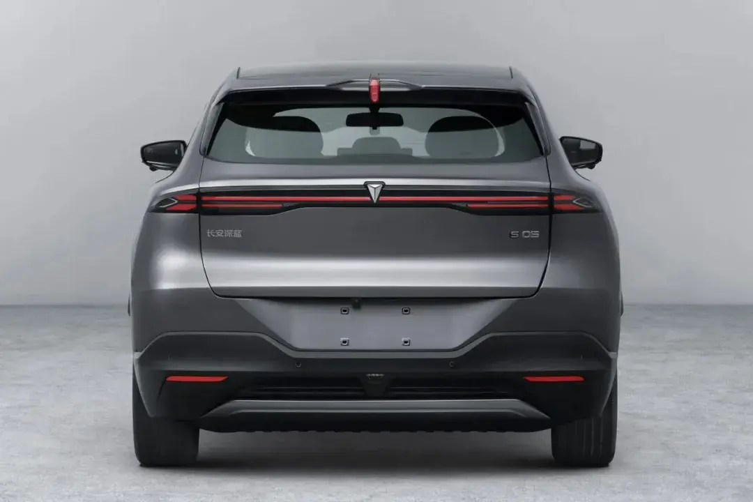 車身尾部,配備貫穿式尾燈組,中央搭配深藍LOGO可以點亮,高位剎車燈采用了獨特的縱向設計,整個尾部科技感十足。此次,內飾并未公布,但是預計于在售的深藍S7不會有太大差距。