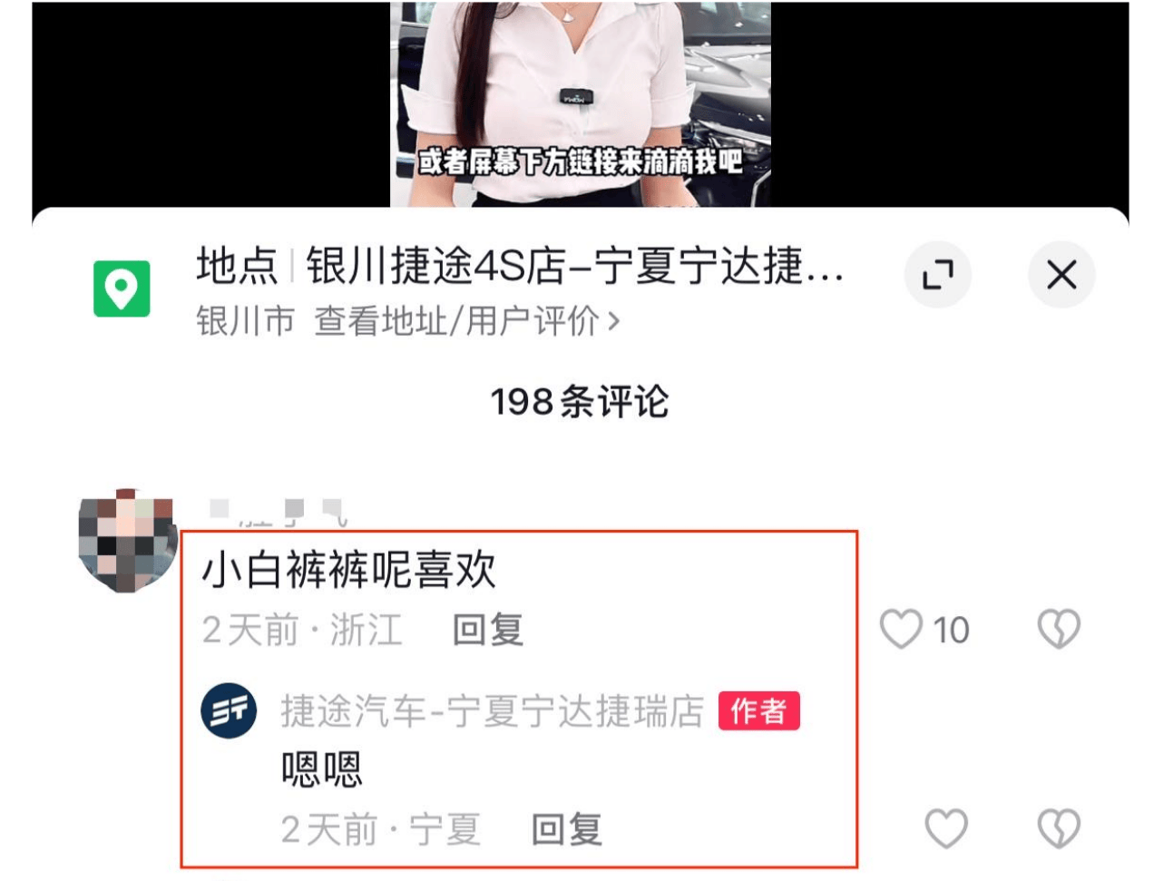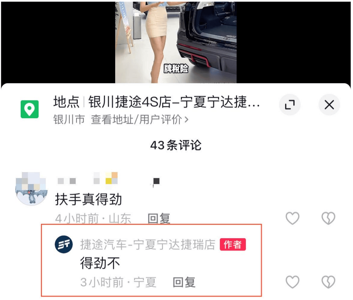 甚至于,一些互動(dòng)的言論,也是“頗為出格”。作為捷途汽車正規(guī)授權(quán)4S店,這種行為是否適當(dāng)呢?