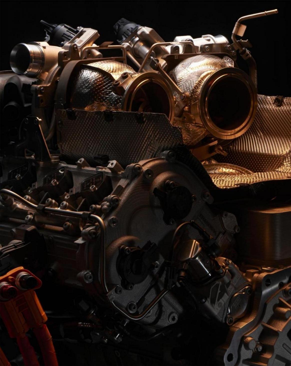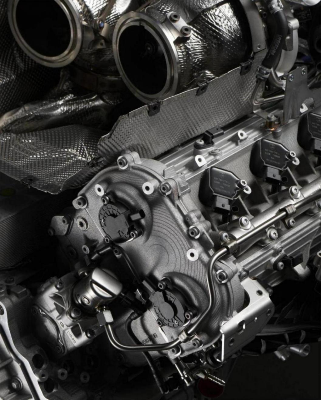 這款雙渦輪增壓V8發(fā)動(dòng)機(jī)的排量為4.0升,升功率高達(dá)200馬力/升。在9000~9750轉(zhuǎn)/分的轉(zhuǎn)速范圍內(nèi),內(nèi)燃機(jī)發(fā)動(dòng)機(jī)的最大功率可達(dá)800馬力。發(fā)動(dòng)機(jī)最高轉(zhuǎn)速達(dá)10000轉(zhuǎn)/分,這一通常出現(xiàn)在賽車(chē)發(fā)動(dòng)機(jī)上的數(shù)據(jù)使全新V8發(fā)動(dòng)機(jī)在公路合規(guī)超跑車(chē)型中脫穎而出。得益于電機(jī)和內(nèi)燃機(jī)發(fā)動(dòng)機(jī)的完美協(xié)作,新車(chē)型配備的動(dòng)力系統(tǒng)在4000~7000 轉(zhuǎn)/分的轉(zhuǎn)速范圍內(nèi)可實(shí)現(xiàn)730牛·米的峰值扭矩,呈現(xiàn)與賽車(chē)發(fā)動(dòng)機(jī)相似的令人振奮的加速過(guò)程。