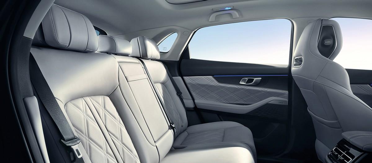 豪越L的車身長(zhǎng)度為4860mm,軸距為2825mm,全系均為2+3+2的7座布局,雖然帶來了實(shí)用性的提升,但犧牲了一部分的乘坐空間和載物空間,后備廂容積為193-2360L。