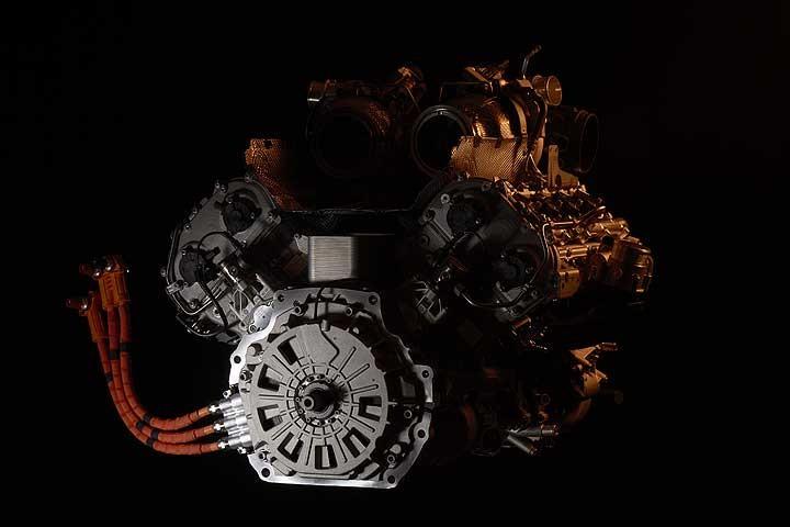 至于專為這顆全新 V8 引擎所設(shè)計(jì)和開發(fā)的電氣系統(tǒng),則是位于引擎和雙離合器變速箱之間,包括了逆變器和一顆軸向磁通電動(dòng)馬達(dá),能夠在 3,500 轉(zhuǎn)時(shí)、額外帶來 110Kw (約 150 匹馬力) 和 300N.m的動(dòng)力。