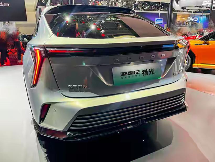 而在獵光e:NS2的車身側(cè)面部分,作為獵裝轎跑SUV定位的車型,其舒展卻不失力量感的溜背布局,結(jié)合類似鉆石切割紋理的腰線和隱藏式門把手等設(shè)計(jì)細(xì)節(jié),既能塑造其側(cè)顏的動(dòng)態(tài)美感,甚至還能塑造出些許性能風(fēng)范。就連它的尾部,順延大溜背形成的平面后車窗與“小鴨尾”,配合著層梯式后包圍以及鋒利的后鏟,可讓其外觀整體的運(yùn)動(dòng)畫風(fēng)得到完美收尾。此外,兩側(cè)形成了“獠牙”樣式的貫穿式尾燈,還能呼應(yīng)前臉的科幻屬性。至此,其出眾的顏值表現(xiàn),便可充分契合當(dāng)前新能源市場的主流審美。