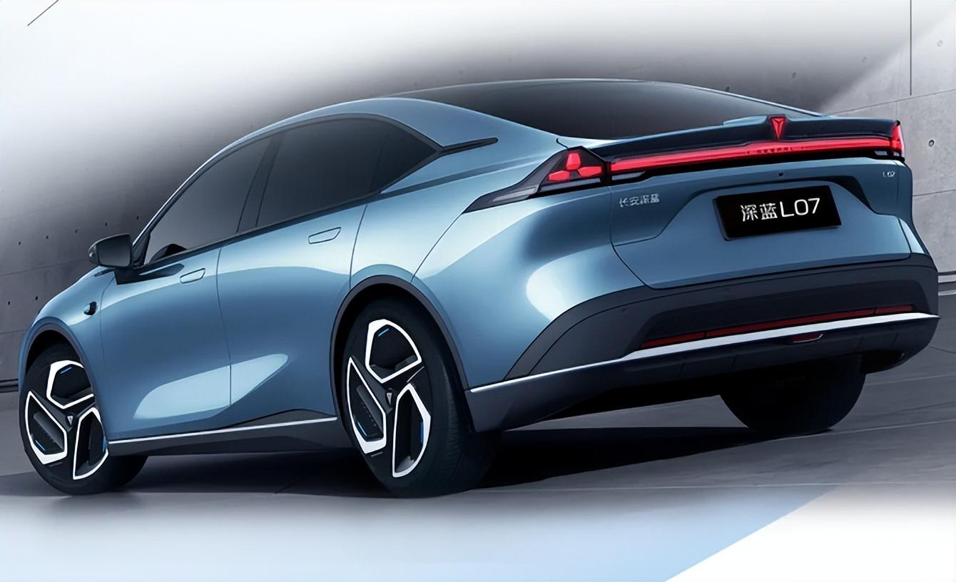 車尾部分,如果不仔細觀察,很難發(fā)現(xiàn)它與深藍SL03的差別,在車尾上部,它采用了同款的貫穿式尾燈設計,燈腔內(nèi)部有著大量細小的燈組構(gòu)成,經(jīng)過黑化處理之后有著不弱的辨識度,值得一提的是,它還提供了電動尾翼配置。在尾燈下方的車牌區(qū)域,深藍L07的造型有略微變化,并且比深藍SL03有著更明顯的棱角,另外,在下包圍處的反光標志也變成了貫穿式設計,并緊挨著一條鍍鉻飾條。