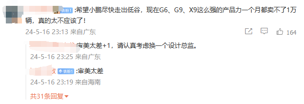 有網友指出問題,小鵬車系的造型設計不太符合國內消費者的審美觀念,產品力很強,但是不好看,銷量肯定是不會好的。