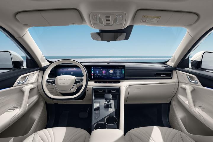 榮威D5X DMH在內飾設計上也同樣不遺余力,云宿智能座艙在簡約中又保留了幾分溫馨和奢華。中控臺配備了一塊24.6英寸的懸浮一體式雙聯屏,內置全新斑馬智行車機系統和聯發科車規級芯片,支持手機與車機導航的無縫流轉、智能語音識別、充電規劃、智能娛樂空間等功能,為乘客提供了豐富的智能交互體驗。同時,新車還配備了手機無線充電、全景天窗、全景影像、256色環境氛圍燈、電動尾門等配置,進一步提升了駕乘的舒適性和便利性。