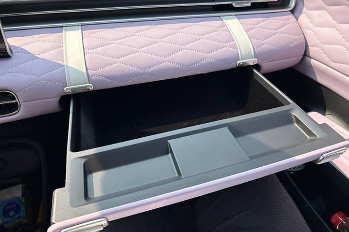 進(jìn)入車內(nèi),我被那高質(zhì)感菱格紋軟包內(nèi)飾所包圍,精致松軟,包覆感強(qiáng)。抽屜式副駕島臺設(shè)計更是讓我眼前一亮,抽拉之間秒變化妝臺和辦公桌,無論是出行途中還是日常使用,都能滿足我的不同需求。這種設(shè)計不僅實(shí)用,還充滿了創(chuàng)意,讓我對東風(fēng)納米01的好感度直線上升。
