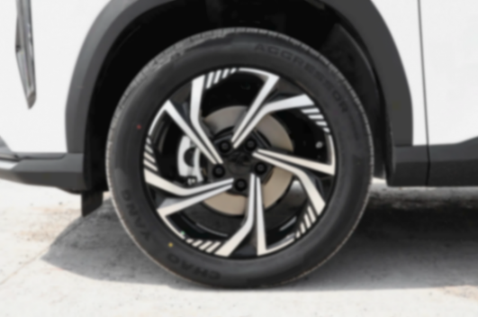 實拍的這款車,設計了渦輪樣式的輪圈,外后視鏡做了黑化處理,A柱、B柱、C柱也做了熏黑處理,車尾微微上翹,造型動感。