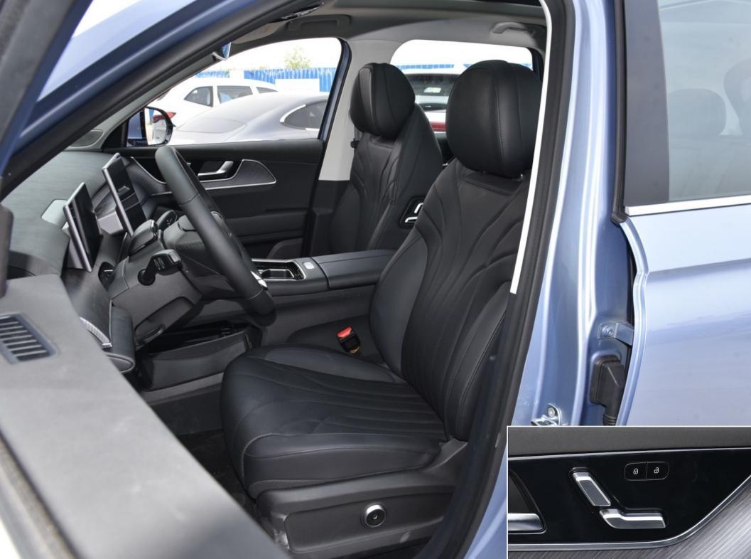 座椅采用仿皮材質(zhì),內(nèi)部有10層填充物,厚實有彈性,與身體貼合度較高。坐墊長度充足,靠背與頭枕都有一定的側(cè)向支撐力。配置給得很足,除了常規(guī)6向電調(diào),還有4向腰托,3檔通風(fēng)與加熱和10點式氣袋按摩。提供女王副駕座,主駕的功能全部都有,還增加了電動腿托,最大開啟角度128°,靠背最大角度125°,可舒適躺平。