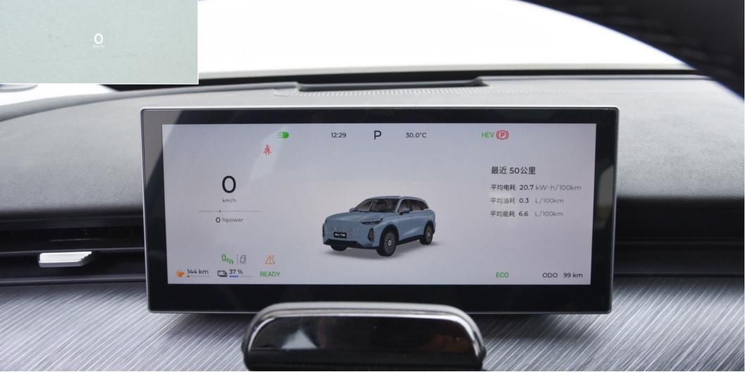 動力方面,采用1.5T混動專用發(fā)動機和單擋DHT,混動專用發(fā)動機可實現(xiàn)深度米勒循環(huán),最高熱效率44.5%,最大功率115kW。驅(qū)動電機最大功率150kW、最大扭矩310Nm,系統(tǒng)綜合功率265kW,綜合扭矩530Nm,零百加速7.7秒,虧電油耗5.2L/100km。工作邏輯與DM-i類似,中低速電機驅(qū)動,發(fā)動機在虧電時啟動增程,高速時發(fā)動機利用單擋直驅(qū),始終工作在高效區(qū)間。提供19.43kwh的三元鋰電池組,帶來CLTC工況120公里純電續(xù)航里程,支持快慢充和對外放電。