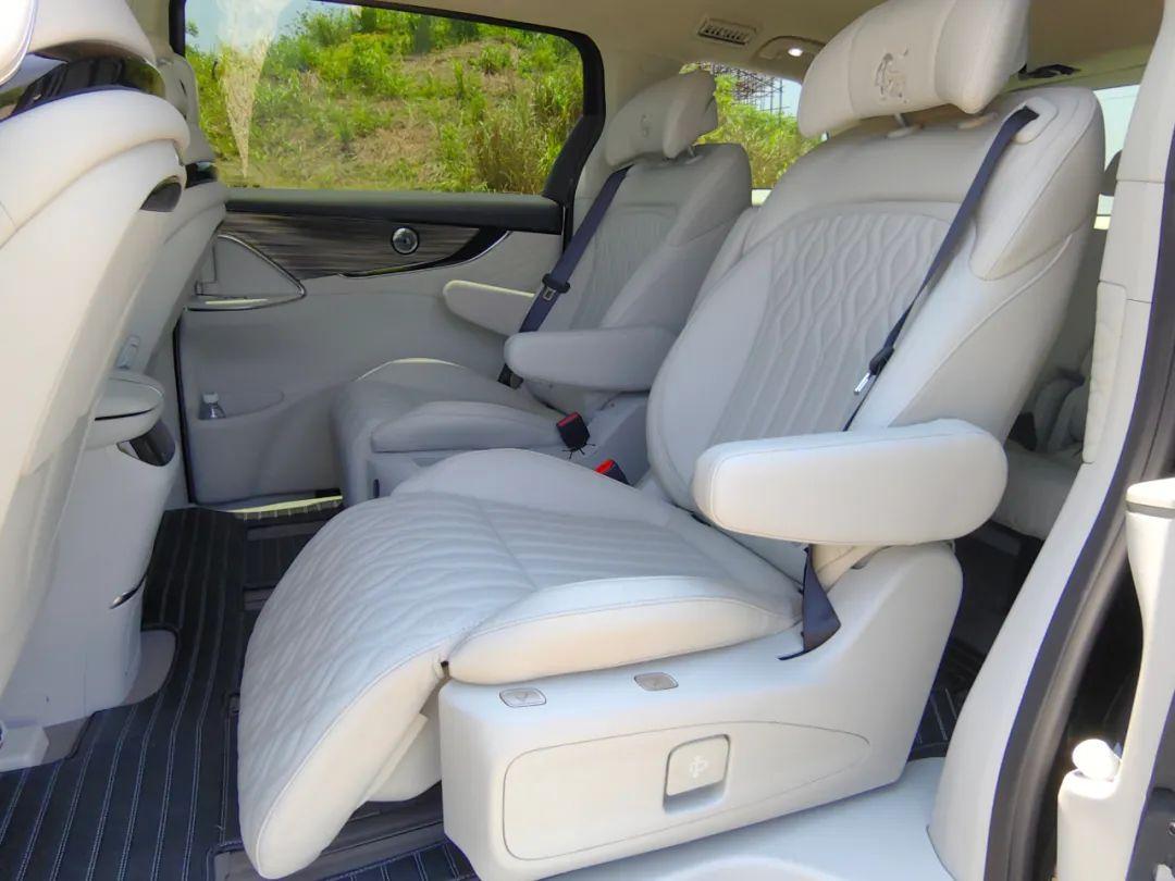 作為一部MPV,采用2+2+3的座椅布局,其中第二排座椅更是支持12向電動調節,通風加熱按摩、扶手智慧屏,配備腿托、小桌板。前后左右四向滑動兩獨立豪華航空座椅,實際乘坐體驗,坐墊柔軟,靠背支撐性不錯。進入中間第二排過道寬敞,方便進出第三排,第三排頭部空間和腿部空間不擁擠,并且第三排支持多角度調節,舒適性得到保障。