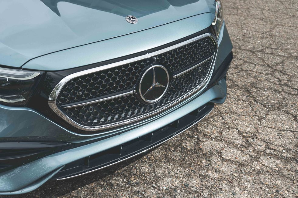 在外觀方面,新車當然主打運動的大標款式,巨大的奔馳車標引出的寬敞式鍍鉻條鑲嵌于滿天星狀中網填充之上,外側加入了雙層裝飾條進行包裹,引出了花生狀的大燈組,前機蓋處還有著額外的車標與之形成對應,前保險杠部分自帶AMG風格套件,雙層式格柵呈三段式鏤空,進一步增強了運動感。在車身側面,標準軸距版本的車身還是相對克制,沒有超過5.0米,比短軸版全新5系要更加緊湊一些,表現了運動的姿態。
