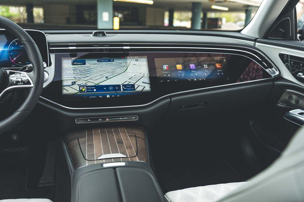 大尺寸輪轂,隱藏式車門把手,隨處可見的鍍鉻裝飾等元素也都不會缺席,豪華感方面也并不欠缺。在車尾部分,貫穿式的尾燈當然是核心的元素三叉星的光源已經成為了最新的家族特征,貫穿式的鍍鉻條也不會缺席,尾箱蓋末端有著翹起的小鴨尾,后保險杠部分雙邊雙出排氣,精致的鍍鉻條包裹,還有縱向的進氣道進行補充,為運動的設計畫下圓滿的句號。在內飾部分,雙大尺寸液晶屏嵌入一整塊玻璃面板之下及懸浮式大尺寸液晶屏形成三屏聯動,加上Hud抬頭顯示四屏互動,也已經成為了奔馳最新的家族設計。