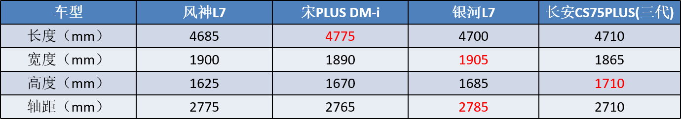 尺寸部分,風神L7的三圍表現得比較普通,長寬高分別為4685/1900/1625mm,但軸距,卻是去到了接近中型SUV水準的2775mm。在同價位車型中,比它長的并不多。
