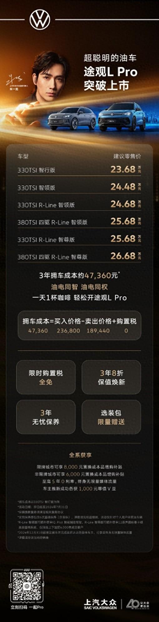 5月30日,“超聰明的油車”途觀L Pro在成都上市。本次上汽大眾開行業之先,“不卷價格、只上價值”,上市即響亮打出了“擁車成本”的概念。疊加給力的限時購置稅全免、3年8折保值煥新、3年無憂保養以及選裝包限量贈送等權益,途觀L Pro三年擁車成本僅需47,360元起,真正做到用車無憂,省上加省,打造性價比標桿中的標桿!