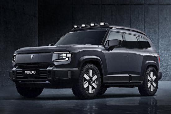 外觀方面,深藍(lán) G318 采用硬朗的車身線條設(shè)計,整車造型較為方正,彰顯其硬派 SUV 的定位。車頭采用封閉式格柵設(shè)計,長條形裝飾板與 C 字形大燈相貫通,視覺整體感較強(qiáng)。前包圍造型較為厚重,搭配車頂探照燈以及外掛式備胎,越野氣息十足。