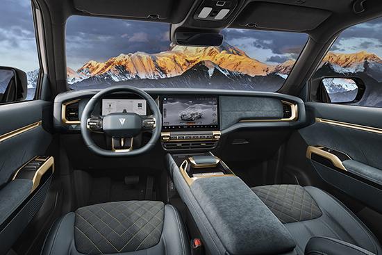 內(nèi)飾方面,深藍(lán) G318 延續(xù)了外觀硬朗的設(shè)計風(fēng)格,中控臺采用大量平直的線條勾勒,擋把與中央扶手融為一體,彰顯出較強(qiáng)的力量感。14.6 英寸中控屏采用內(nèi)嵌式設(shè)計,屏幕下方保留了部分物理按鍵,便于操作。