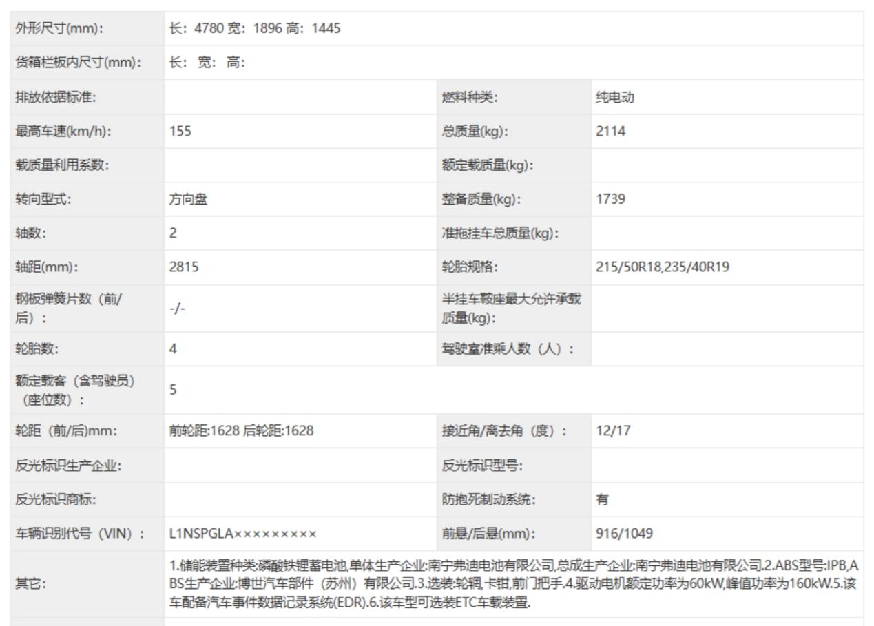 車身尺寸4780x1896x1445mm,軸距2815mm,這次申報的最高車速只有155km/h?稍微低了些吧?