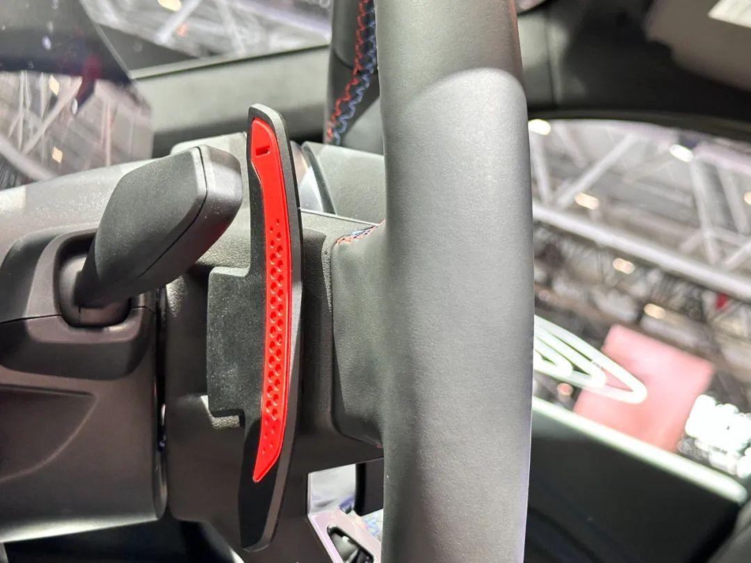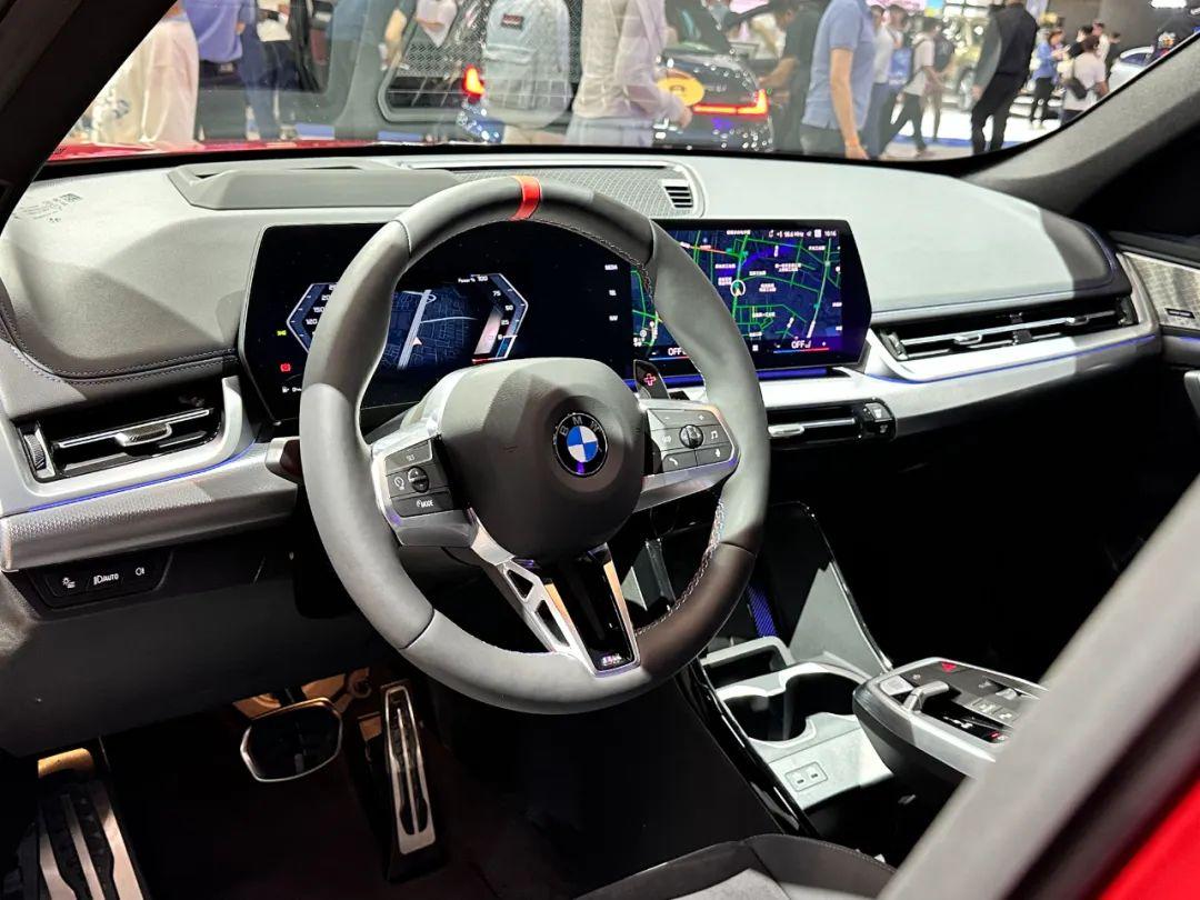 內飾整體的設計語言和普通X1相差不大,搭載的也是第9代(BMW)操作系統,但細節之處還是能體現性能范。比如方向盤12點位置的紅色標記、大尺寸的換擋撥片、M運動型座椅等等。
