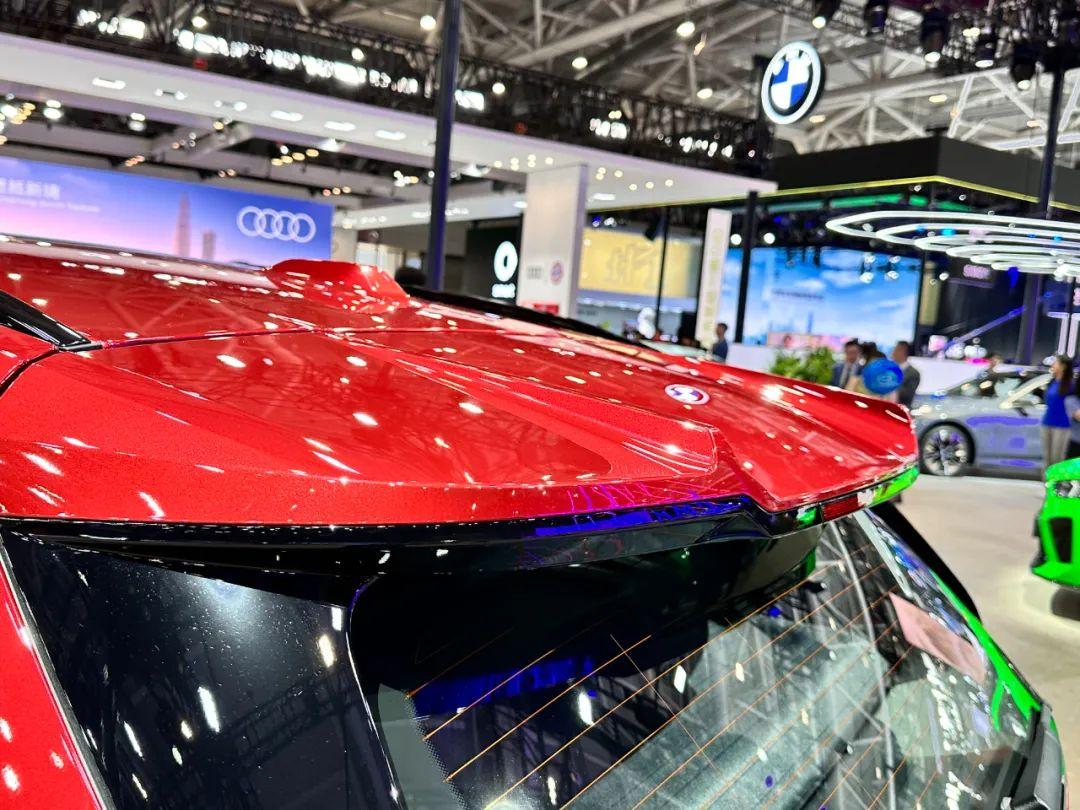 這臺寶馬X1 M35Li展車配備的是火焰紅車漆,沒錯正是i5 M60上的同款,小編我個人是非常喜歡高亮黑色套件配紅色車漆的,很有性能范的感覺。