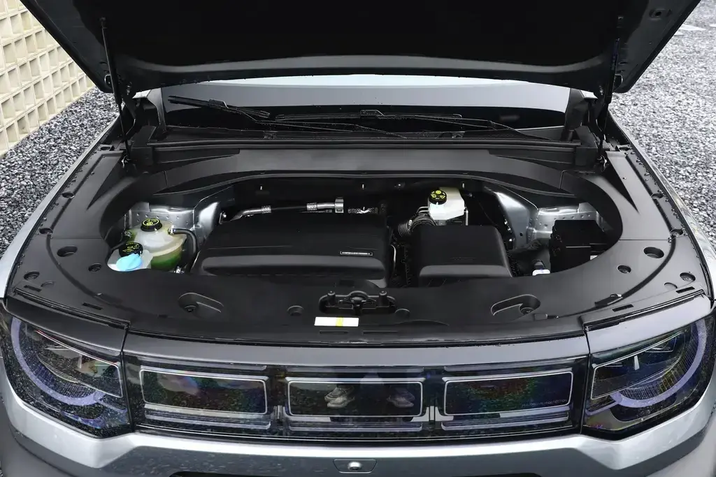 外觀方面,北京BJ30的整體走線非常硬朗粗獷。由于新增了新能源車型,北京BJ30將原本非常具有辨識度的巨大鍍鉻五孔前格柵的區域,創造性地改造為一張橫貫車頭的包覆燈罩;而真正的進氣格柵,則被隱藏在燈罩中部下面的前臉中部區域。當日行燈點亮時,會形成一條十分顯眼的貫穿式燈帶,這種設計在繼續維持了北京吉普家族式設計風格的同時,也十分具有辨識度。