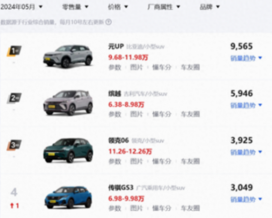 結束語:元UP的一枝獨秀并不是好的現象,因為小型SUV市場空間正在被快速壓縮,而分流這部分客戶的就是電動小型轎車、緊湊級轎車和緊湊級SUV三大體系,它們的價格高度重疊,像純電小型轎車價格普遍不高,也就不難理解目前的小型SUV越來越難賣了。