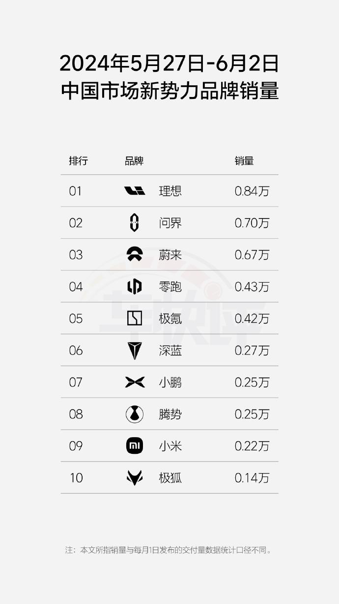 根據剛剛公布的今年第22周(5月27日~6月2日)造車新勢力銷量數據顯示,小米汽車賣了0.22萬輛車,相比上周銷量環比下降了18.5%。