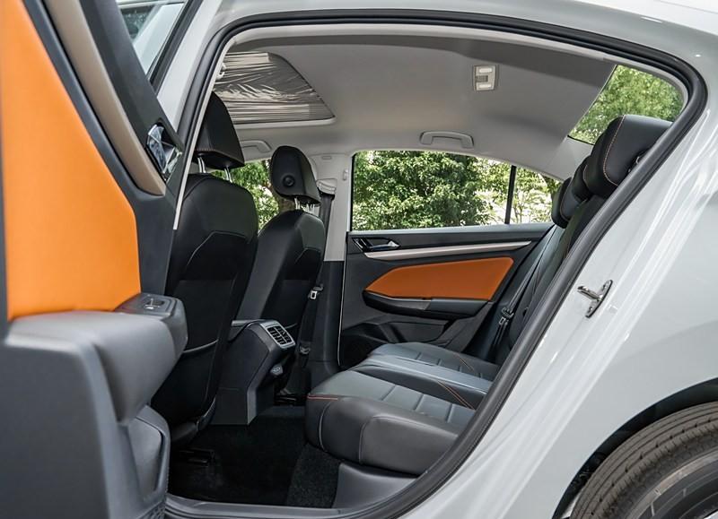 空間表現(xiàn)在同級別中談不上搶眼,算是正常水平,身高1.77米的乘客坐在后排,腿部空間1拳近4指,頭頂空間3指多的余量,后排空調(diào)出風口、頭枕都有配備,但是地板中間的凸起高,后排空調(diào)出風口設計的也靠后,降低了些乘坐舒適性,尤其是并排坐滿3人的時候,中間乘客的腳不知道放哪邊才行,夏天穿短裙的女生會有點尷尬。