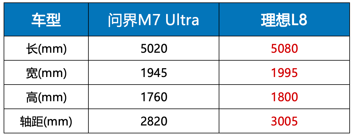 空間對比:理想L8尺寸全面碾壓問界M7 Ultra
