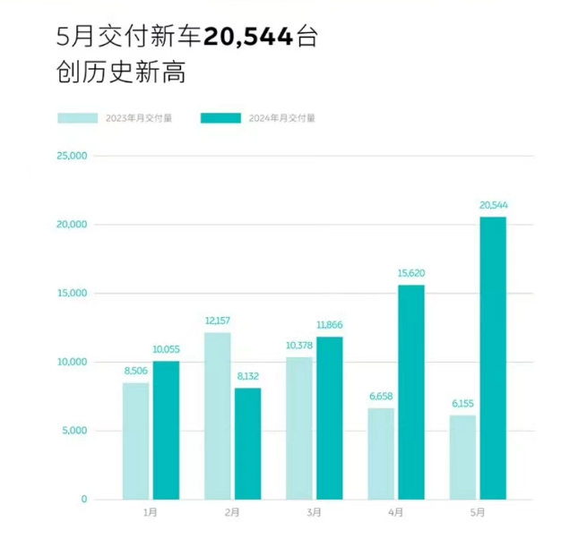 沉淀了許久的蔚來汽車,終于在5月迎來新的生機,5月銷量達到20544輛,同比增長233.8%,環比增長31.5%,創歷史新高。銷量回升的原因,一方面在于2024款車型算力高,智能駕駛全域全量推送;二是蔚來換電帶來的補能便利性逐漸受到了更多消費者的認可;三是BaaS調價和促銷給用戶帶來了更多優惠。